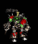 The shredder is an impressive goblin mechanical creature which is usually piloted by a goblin. Shredders are used for lumbering, but they can serve in war because of the solid metal construction of the machine and the great saws they wield. The first machine designed to mimic the humanoid form, goblin shredders use the steamsaws attached to their arms to cut down lumber at an incredible rate that is unmatched by peasant work crews. It moves at 10 miles per hour and has a crew of 1 usually designed for goblin-sized creatures, though larger version have been built).[1] (MM&M 186) [2] (M&M 187-188)