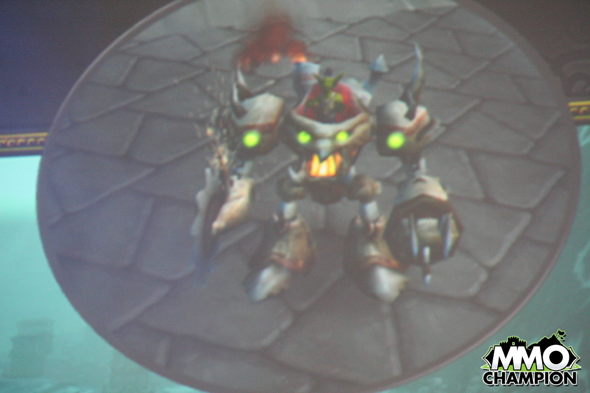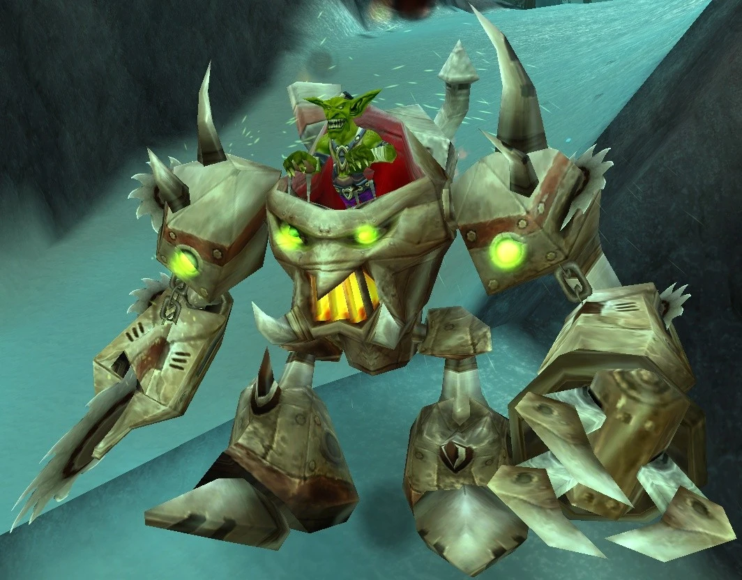 The shredder appeared in the Wrath of the Lich King beta as a Siege Vehicle in Wintergrasp, but has yet to appear in release. It is a ground anti-air vehicle that fires rockets and can rocket boost into the air to reach air vehicles or jump over walls. It essentially acts as a personal armor suit — if the suit is destroyed a player can jump out and keep fighting. It has a close-range melee attack but is vulnerable to siege vehicles.