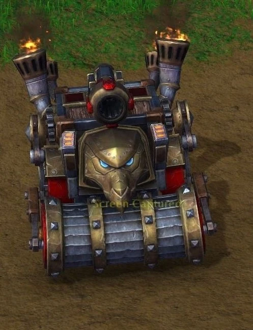 The sturdy Dwarven Siege Engines are a new addition to the Alliance forces. The stalwart Dwarven pilots have even been known to ram enemy structures at high speeds and reduce whole fortifications to dust under the Siege Engines' steel treads.