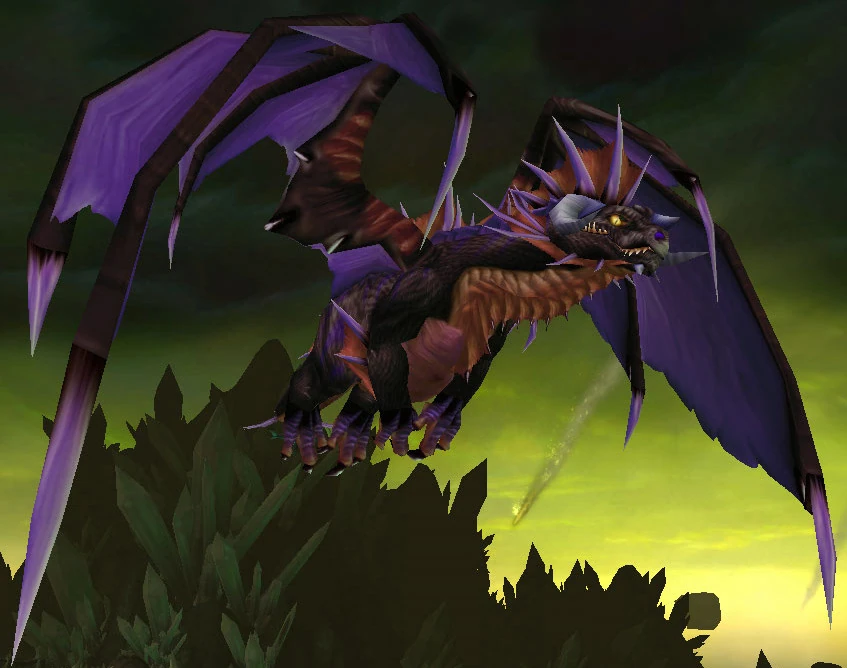 After the disappearance of Deathwing and the deaths of Nefarian and Onyxia, Sinestra reemerged hoping to continue her family's plan of creating a superior dragonflight to rule over Azeroth. Gathering up what shards of the Demon Soul she could find and Balacgos's Bane, Sinestra used these relics, along with the eggs of various flights she had collected over the centuries and the captured nether dragon Zzeraku, to create the twilight dragonflight. One of the first of these new twilight dragons was Dargonax, whom she considered to be her child. Her old nemesis Korialstrasz, along with others such as Zzeraku, the blue dragon Kalecgos, the wizard Rhonin, Vereesa Windrunner, and the draenei priestess Iridi, put a stop to her operation. When Dargonax's already unstable powers finally destabilized, he burned away, taking his "mother" with him. Korialstrasz believed that Sintharia's last, angered glance may have been at him.[1] (NotD 314)