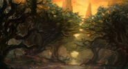 The zone is dire and dark, with hints of light scattered throughout. The forested regions are dark and mysterious, while the sun-bathed coastal plains are blanketed in brilliant wildflowers.