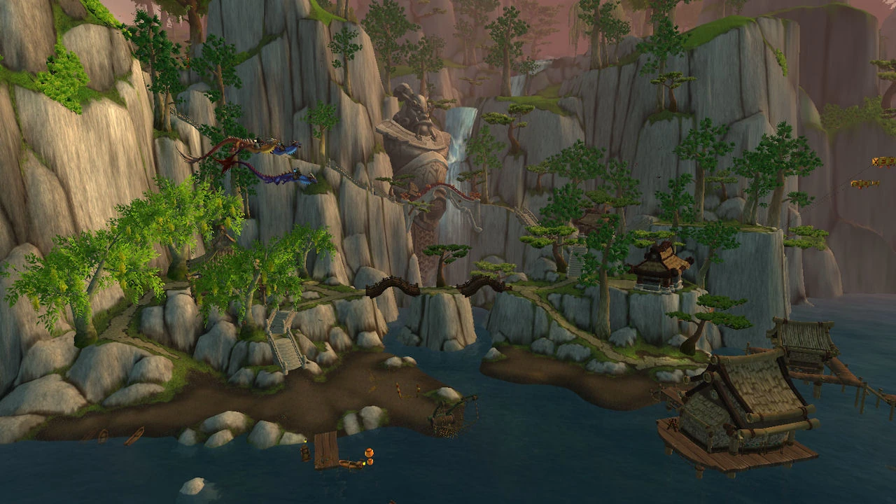 Sri-La Village (orig. Sha La Village) is located on the northeastern coast of the Jade Forest. It is a fishing village, with steep steps leading down to the shore from the cliff's edge. Numerous wrecks abound in the waters around the village, both Horde and Alliance.
