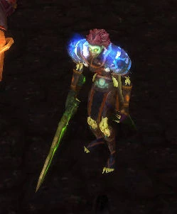 Stabu can be found within a phased version of the Firelands raid by players who are on the quest Fire in the Skies. She is a forsaken rogue and a member of the fictional guild, Thrall's Thrashers. Like some impatient members of raids, she is often jumping up and down.