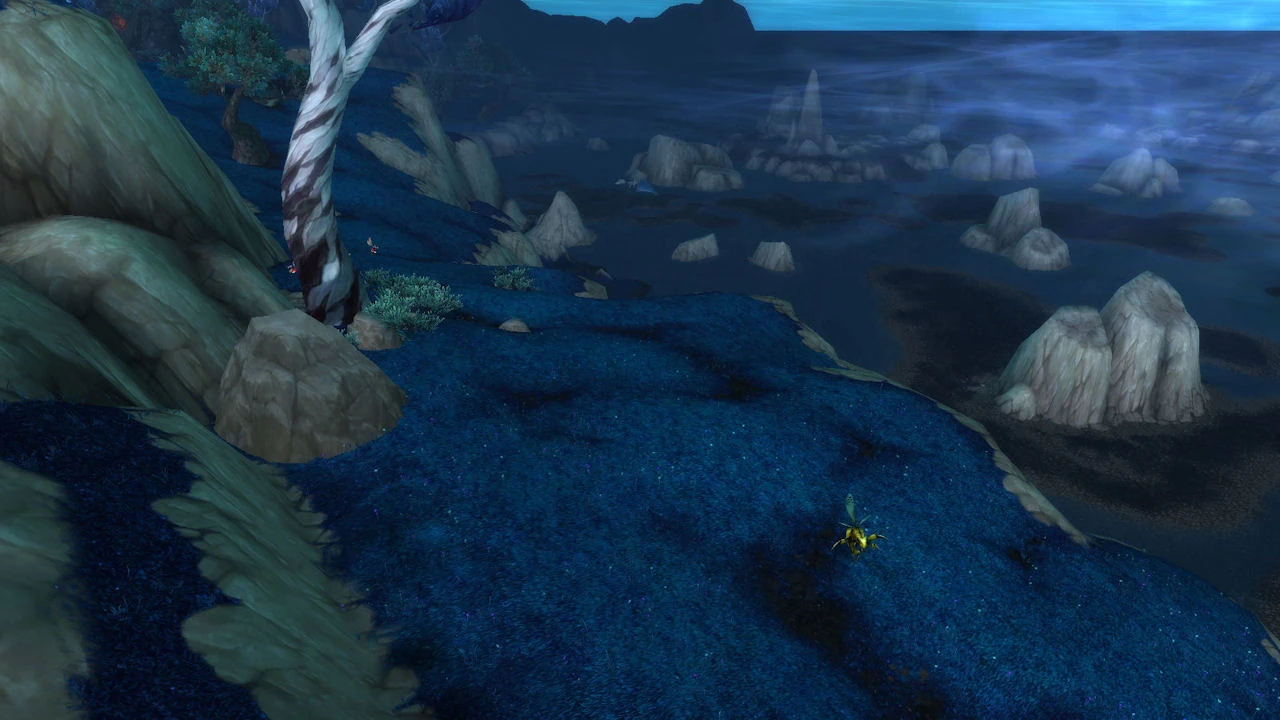 The Stinging Trail is a narrow strip of grassy land located due south of the Heart of Fear in the Dread Wastes, just up from the shoreline. The entire area is populated with wasps.