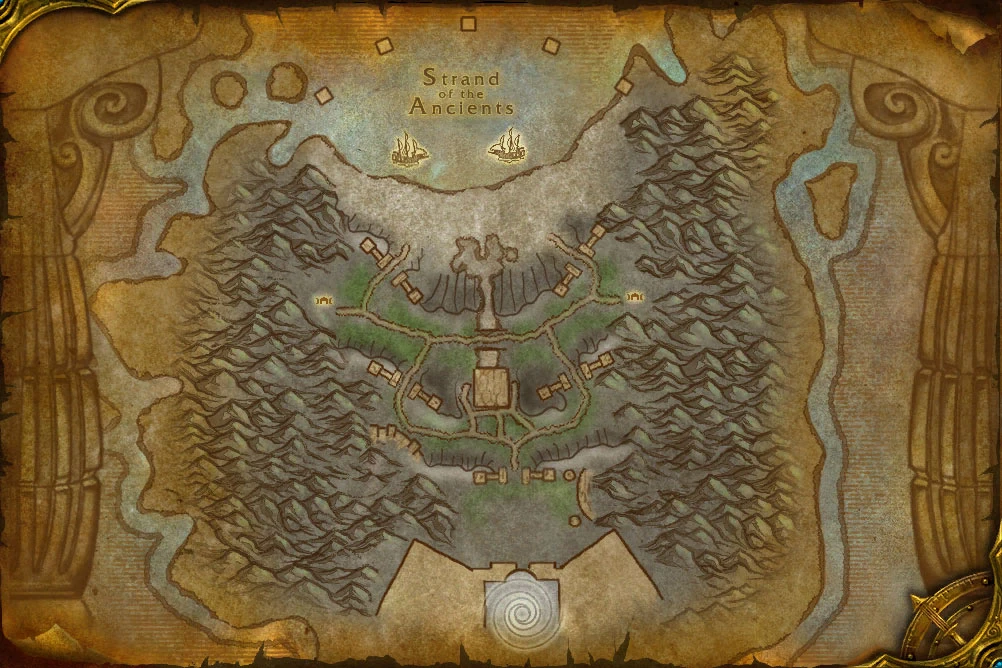 Strand of the Ancients (originally called Sands of Ulduran, but sometimes spelled Sands of Alduran), is a battleground located off the southern coast of the Dragonblight. It may be synonymous with the Northern Islands, though this is speculation. It was introduced in Wrath of the Lich King.