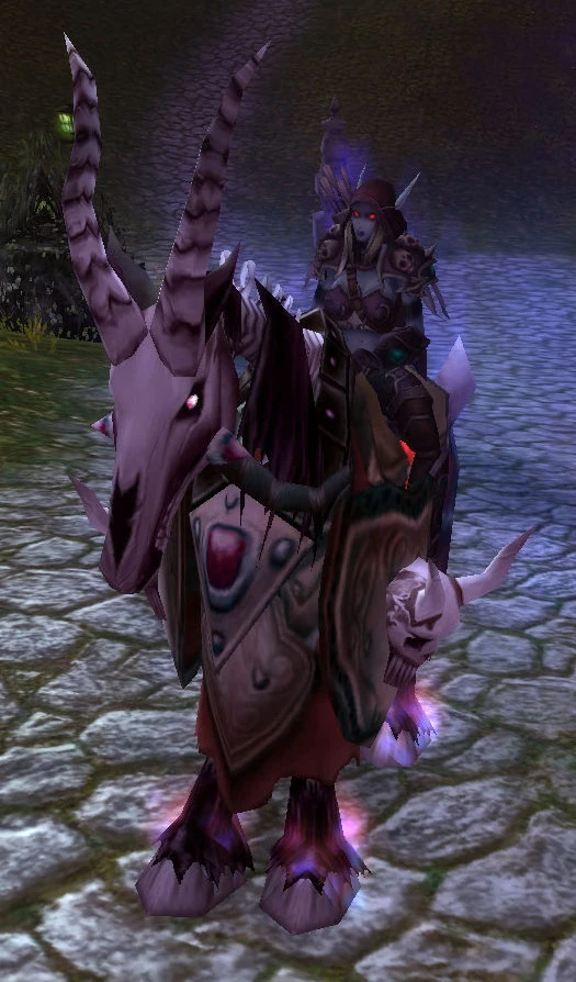 - Sylvanas' mount appears to be a Red Skeletal Warhorse, as seen in the Battle for the Undercity. However, in The Battle for Gilneas City, she uses a Purple Skeletal Warhorse. In one of the quests for the War of the Thorns, however, her mount seems to be a Vicious Skeletal Warhorse.