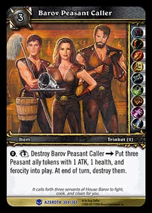 This article or section contains information relating to gameplay taken from the World of Warcraft Trading Card Game.