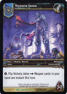 Text - (2), Flip Victoria Jaton Weapon cards in your hand are instant this turn.