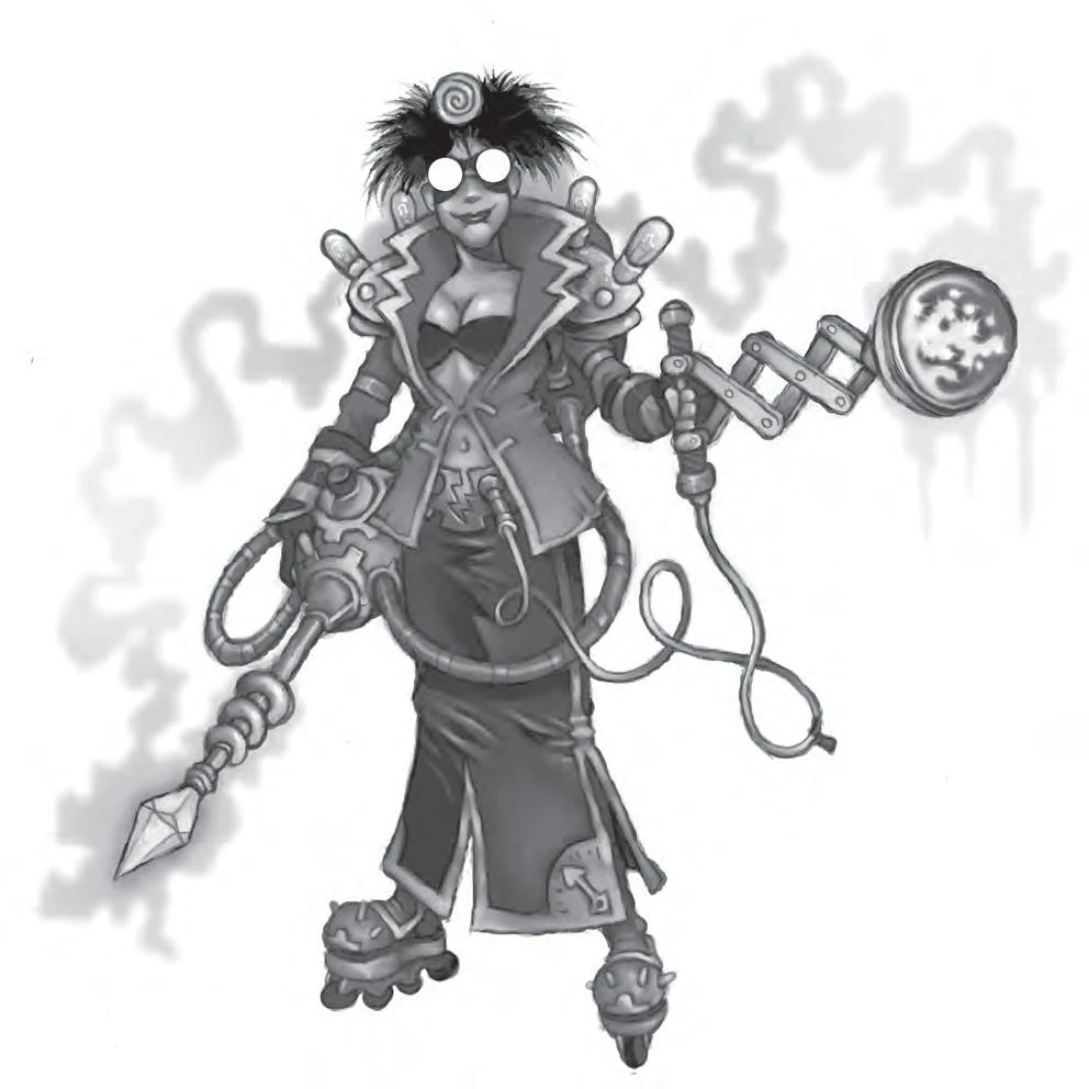 Techno mages are wild-eyed folk, always looking for a shortcut to get what they want. Techno mages are solitary by design (though some gather together at the House of the Arcane Contraption), as there are few of them and many are put off by their odd pursuit of both technology and magic. They are, however, mind-hungry and have a keen interest to talk to mages or tinkers to see if they can learn new things. And if the tinker or mage is then interested in following the path of the techno mage, even better! They are used to derision, but often too caught up in their latest invention to really care. The life of the techno mage is not for the weak. Most techno mages come from a background of the mage path, although some warlocks have joined the ranks.