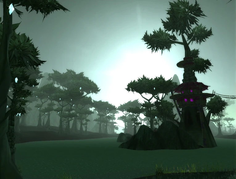 The flora consists of mostly dark green forest vegetation of crystal pines known as olemba trees. Shattrath City lies in the northwestern portion of zone. Alliance and Horde each have a town.