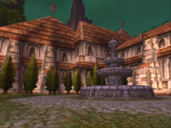 The Terrace of Repose is located on the grounds just north of the Scarlet Monastery. It is one of the very few places in northern Lordaeron where the Plague of Undeath not has reached, and the Scarlet Crusade have been able to grow green hedges and maintain a fountain with water that is fresh rather than stagnant like the rest of Tirisfal Glades.