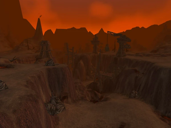 This zone is referenced in one of the human male's jokes, as a parallel to Mount Doom in the Lord of the Rings trilogy. However, in the joke he will say that the Cauldron is in the Burning Steppes rather than the Searing Gorge.