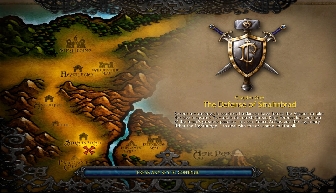 Recent orc uprisings in southern Lordaeron have forced the Alliance to take decisive measures. To contain the orcish threat, King Terenas has sent two of the realm's greatest paladins - his son, Prince Arthas, and the legendary Uther the Lightbringer - to deal with the orcs once and for all.