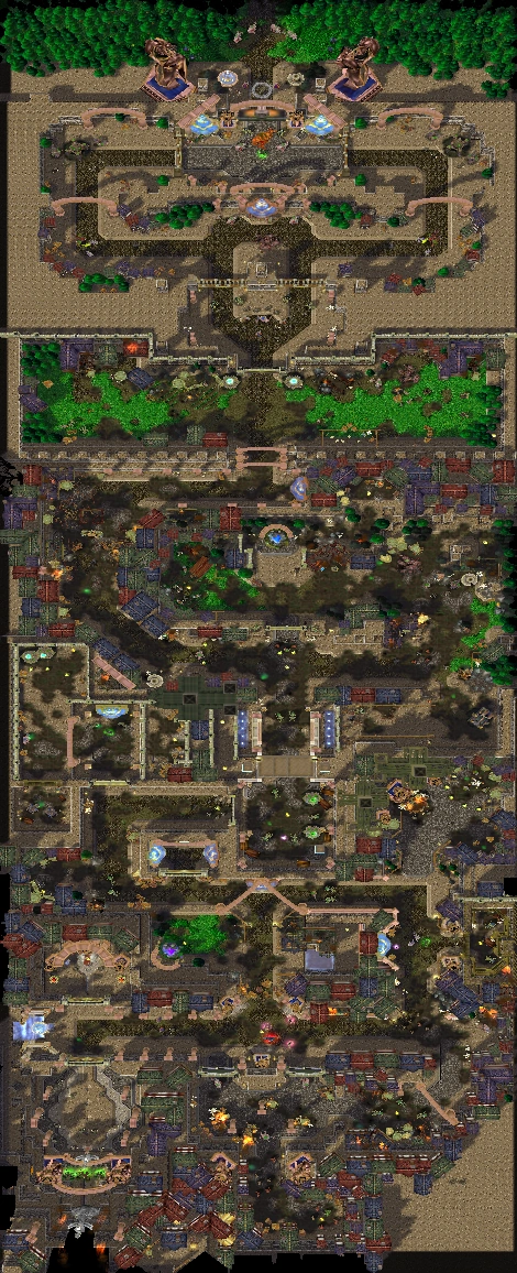 Arthas finishes off the remaining ghouls and breaks out of the throne room. He moves through the city, gathering any warriors still loyal to him, while fending off patrols of hostile undead. The Dreadlords not only control most of the undead in the city, but they also command a number of demons and golems. Although his powers and forces are diminished, Arthas battles past the rebels using his fighting skills and knowledge of the city's layout. Arthas raids an armory and takes control of two Meat Wagons, which he uses to knock out enemy towers. He also recovers some useful magical artifacts and gold coins along the way.