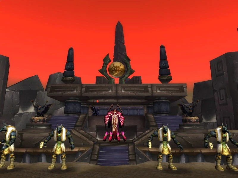 The first boss encounter is a short jog from the entrance of the zone, five trash pulls away. The trash consists of three individual Obsidian Eradicator and two groups of Anubisath Sentinel x4. He was previously about as difficult as Majordomo Executus from the Molten Core, but with the buff he received in 1.12 he is somewhat more difficult. Similar to Executus, the Prophet Skeram requires skill and strategy to beat over quality of gear. Most guilds that have considerable progress in Blackwing Lair can handle this boss.