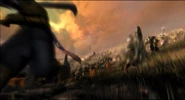The Prophet:"The sands of time have run out, son of Durotan... The cries of war echo upon the winds... The remnants of the past scar the land" (we see a little crow trying to peck out some food from the ground)"Which is besieged once again... by conflict...(we see Orcish Horde running down the hill with noise and war cries, crow has flown away and an orcish catapult floped down, then we see orcish army running down the hill once again)"Heroes arise to challenge fate and lead their brethren to battle..." (we see opposite hill - human army runs down it) "As mortal armies rush down towards ther doom... the burning shadow has come to consume us all" (Infernals begin to fall from the sky, seconds after we see Medivh standing under a heavy rain) "You must rally the horde and lead your people to their destiny!"(Thrall awakens. A crow flies from Thrall's Hut.)"Seek me out."