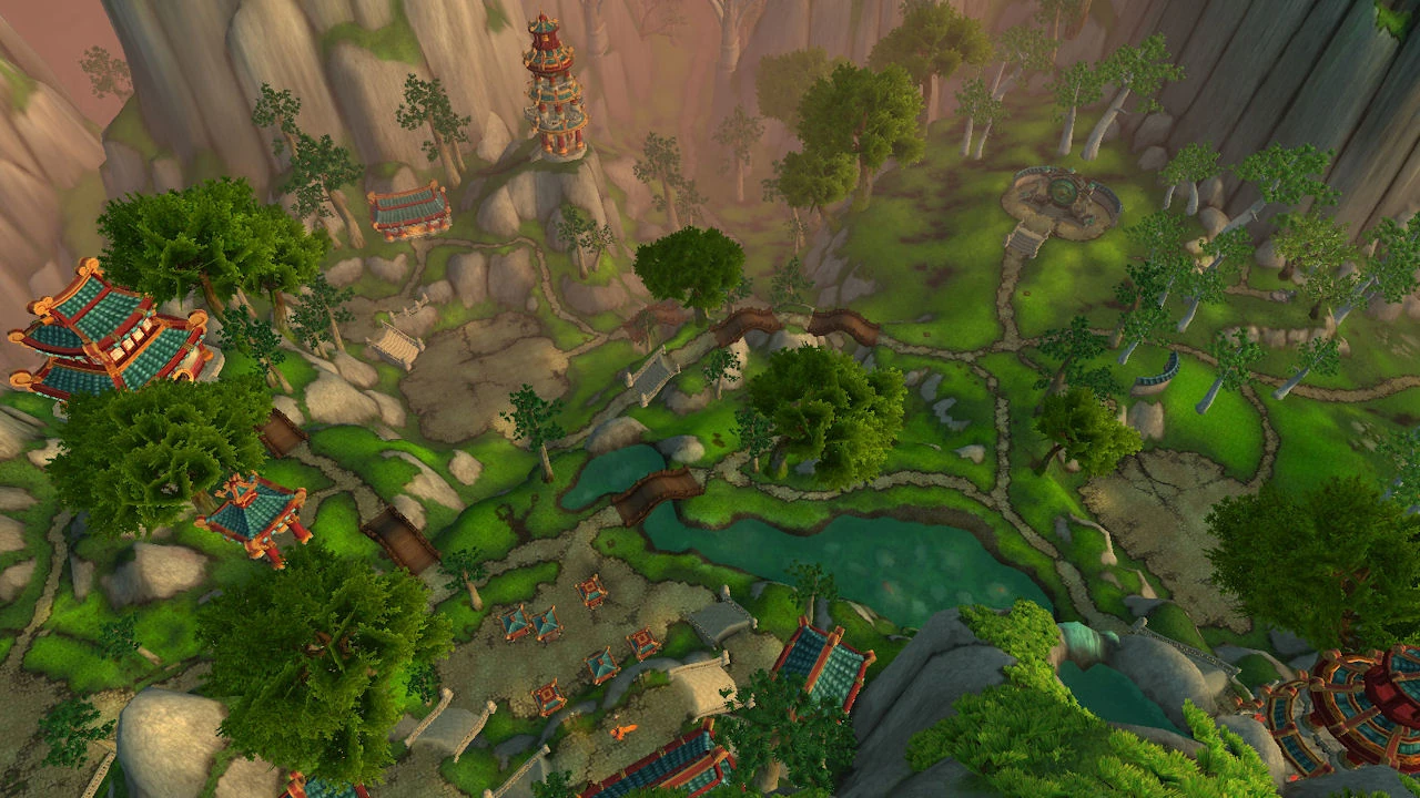 Tian Monastery (orig. Chun Tian Monastery) is located in the north-central part of the Jade Forest and serves as a training ground for not only pandaren, but also for such disparate races as the jinyu and hozen.