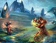 Twin Spire Ruins are the remains of a holy draenei site in Zangarmarsh now contested by the Alliance and Horde. Two towers flank a burial ground, with the towers being capturable. When both towers are captured by a faction, their battle standards are carried forth and placed in the graveyard, giving complete control. Before the Orc Corruption, they were lighthouses for draenei ships. ( https://twitter.com/DaveKosak/status/399321560344850432 )