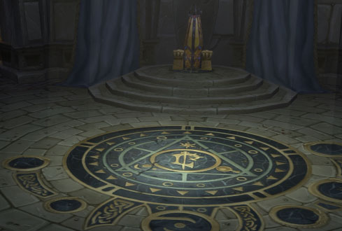 Upon entering the throne room, multiple voices are heard, the first being King Terenas and the warning given by the prophet, Medivh. Soon after, you hear the exchange between Arthas and his father as he kills him. The blood stain of the crown falling on the floor from Warcraft III can also be seen on the floor near the throne.