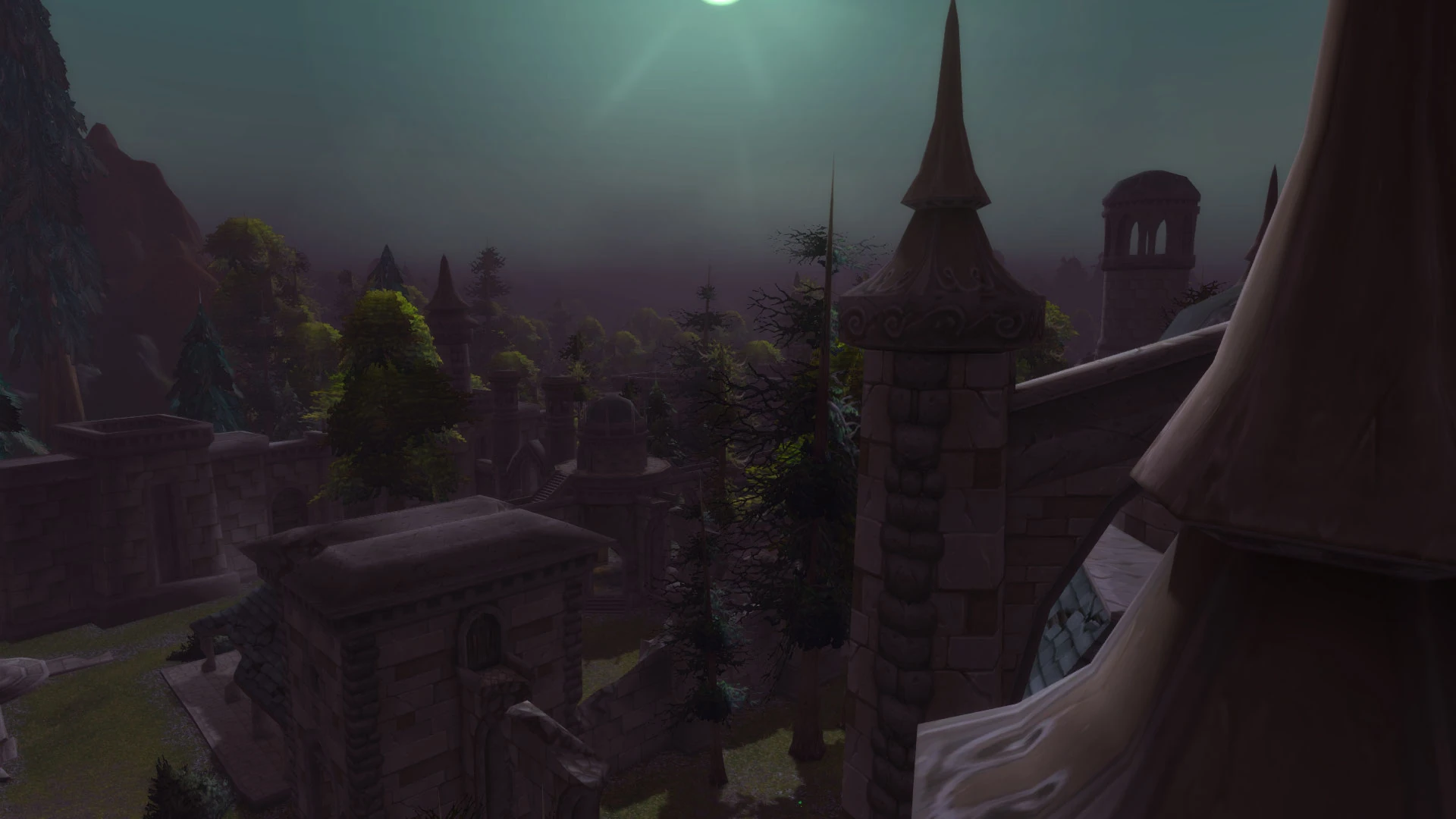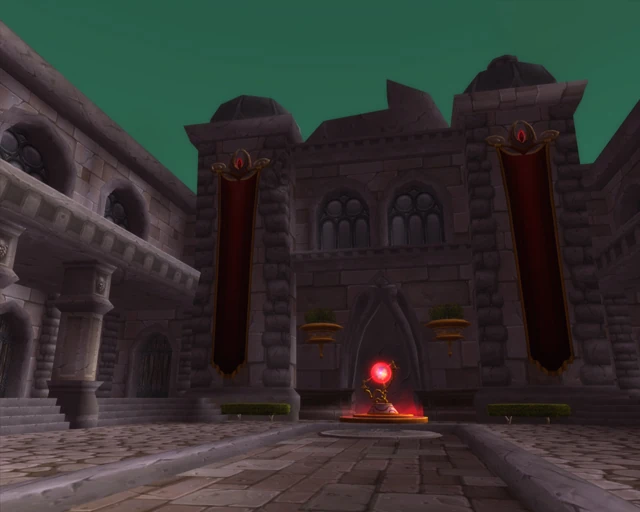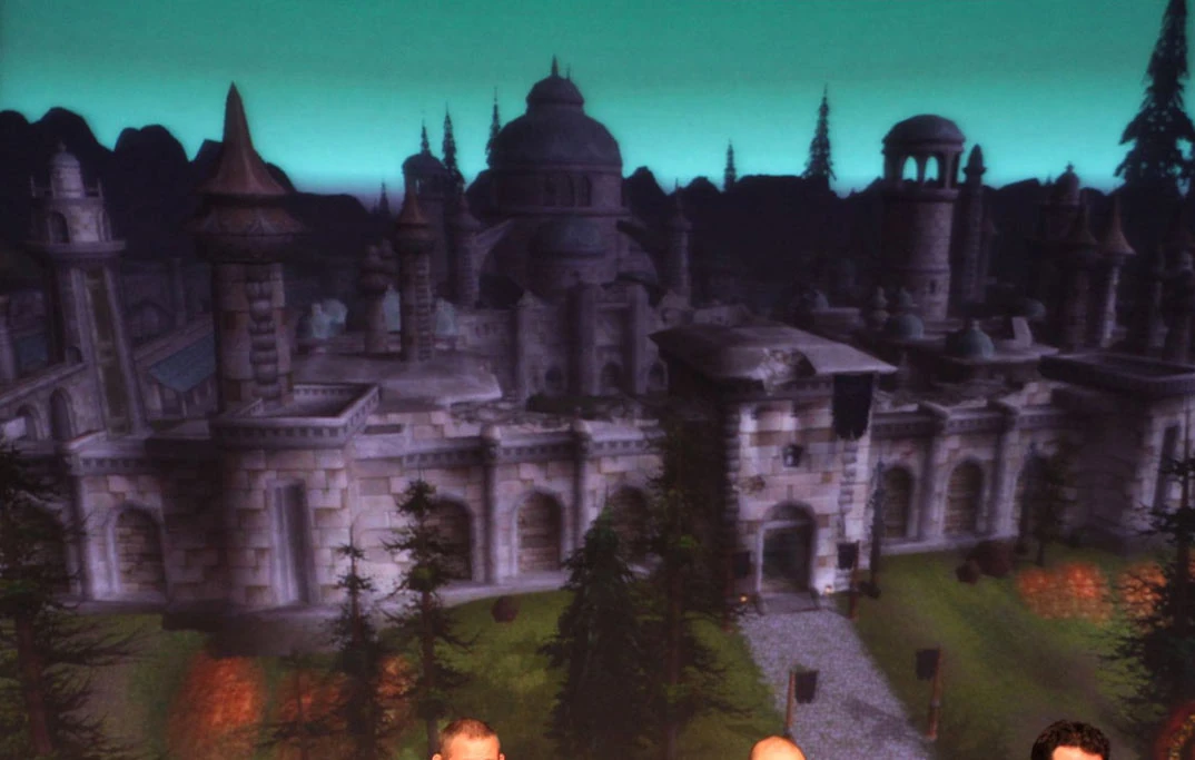 Though from the outside players see many towers and rooftops, they are in fact nothing more than an illusion. The former Lordaeron capital is sparsely decorated in-game with only the courtyard, translocater room and tomb being an actual part of the former structure. The game designers did not intend for anyone to see Lordaeron from above, or get to other parts, just to walk through it. This has been changed in World of Warcraft: Cataclysm where the ruins of Lordaeron were fully built.