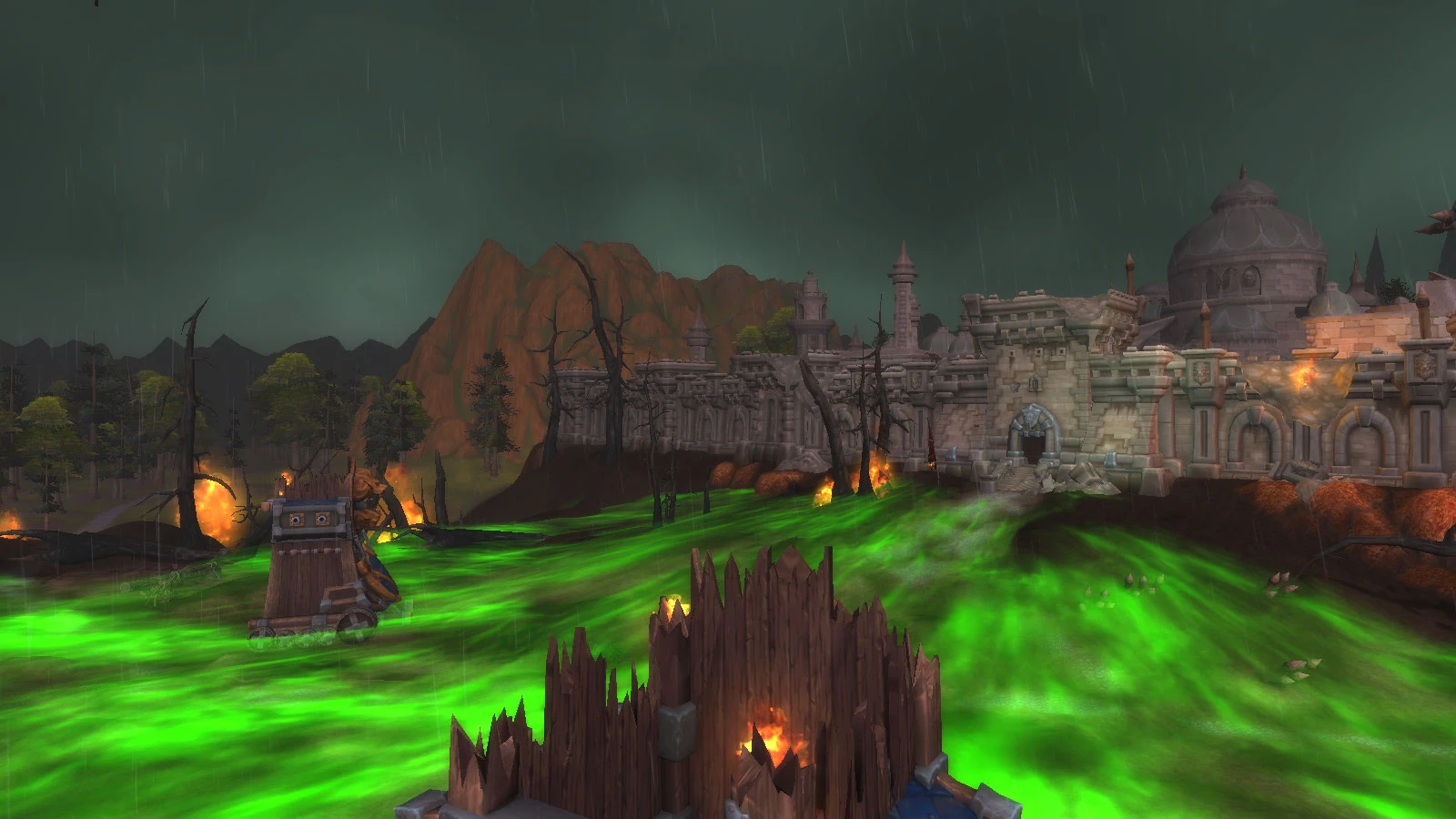 For retaliation in the burning of Teldrassil during the War of the Thorns, Anduin Wrynn and the Alliance lay siege to the Undercity. Sylvanas, having expected such an attack, attempts to trap the Alliance leadership multiple times with blight, but this is thwarted each time by Jaina Proudmoore. It is during this last blight explosion that the entirety of the Undercity is engulfed, leaving it uninhabitable even for the Forsaken.