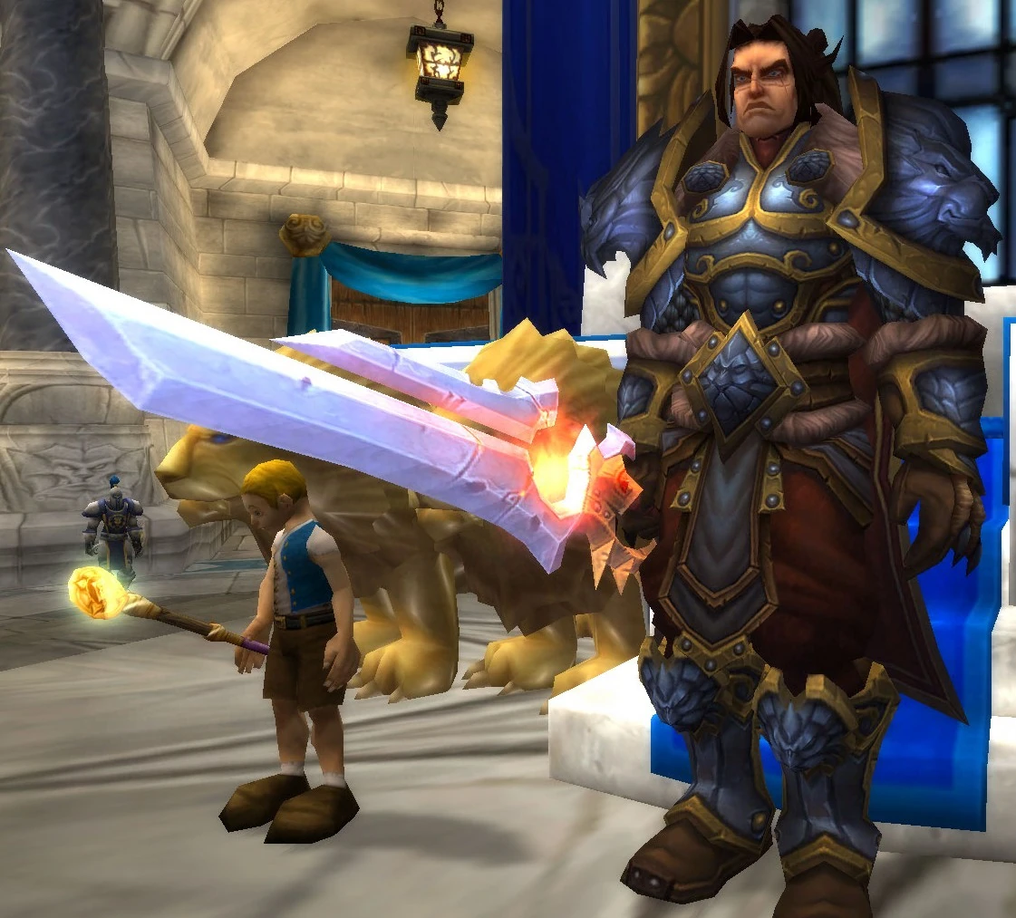 Onyxia desperately tries to incinerate him, but Varian swiftly reached Onyxia's head and impaled her with his newly-fused elven sword, Shalamayne. With Onyxia dead, Varian reunited with his son and friends, telling them their long and noble deeds would be rewarded and Stormwind would be reborn with a new hope for the future.[9]