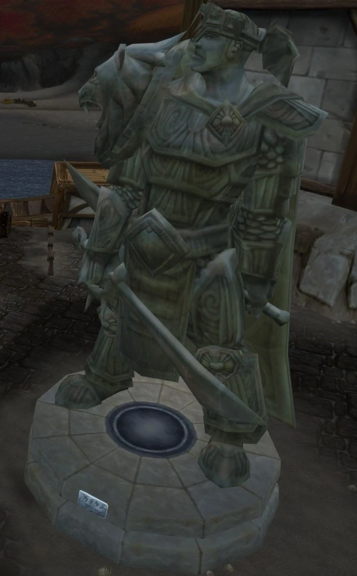A statue of King Varian, alias Lo'Gosh, stands in Valiance Keep in the Borean Tundra: