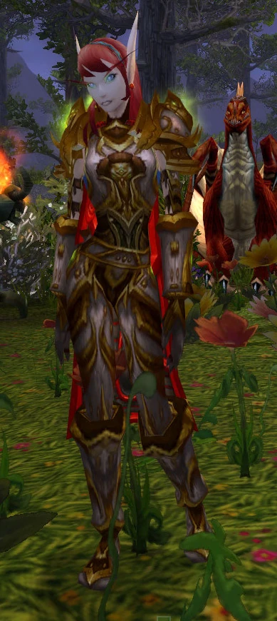 Velastrasza is a red dragon in high elf guise, usually found standing next to or near Baleflame. She serves as a quest giver at the Highland Forest