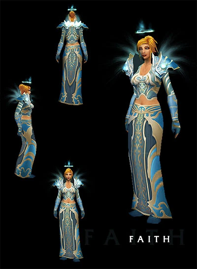 (2) Set: Reduces the mana cost of your Renew spell by 12%. (4) Set: On Greater Heal critical hits, your target will gain Armor of Faith, absorbing up to 500 damage. (6) Set: Reduces the threat from your healing spells. (8) Set: Each spell you cast can trigger an Epiphany, increasing your mana regeneration by 24 for 30 sec.
