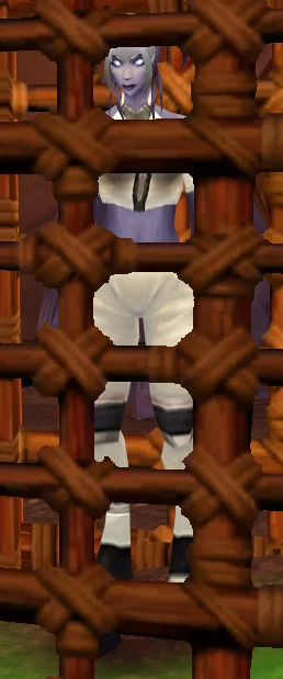 Vindicator Vuuleen is a level 67 quest giver located in a cage outside Bladespire Hold in the contested territory of Blade's Edge Mountains.
