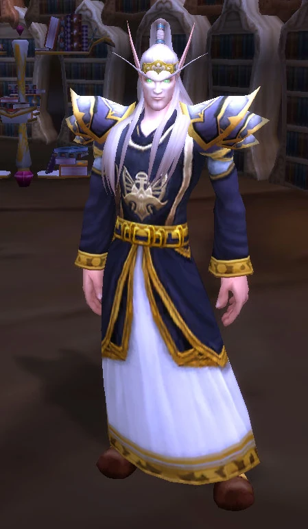 Formerly a magister under the command of Kael'thas Sunstrider, servitor of Illidan, Voren'thal led an army of blood elves against the Sha'tar and their Aldor allies who had reclaimed the shattered Shattrath City. But as the Aldor vindicators and exarchs prepared to defend their city, the unexpected happened - the blood elves put down their weapons before the draenei defenders. Voren'thal stepped forward and demanded an audience with the master of the Sha'tar, the naaru A'dal.