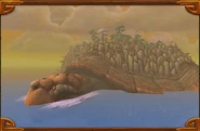 It is the rare pandaren indeed who sought a way beyond the mists of Pandaria. Generations ago, pandaren explorers began to gather on the back of a giant turtle: Shen-zin Su. This great sea turtle roamed Azeroth's oceans for hundreds of years, eventually losing contact with their mist-shrouded homeland.