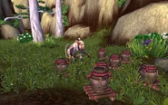 The majority of the Wandering Isle is covered by lush grasslands intermingled with groves of trees. The eastern half of the Isle is comprised of many lakes and pools, some that contain mystical properties. This area is known as the Singing Pools. South of this is the main agricultural center for the pandaren people, Dai-Lo Farmstead. Crop fields are planted nearby that take up the entire southeastern part of the area, with a virmen-infested brewery nearby.