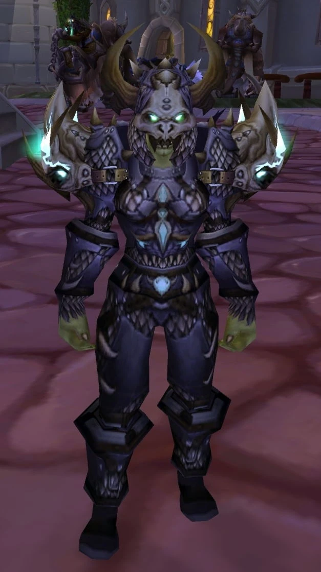 Warp-Huntress Kula is an orc found wandering around Dalaran and is a player-like NPC (Uses Hearthstone, trains professions, checks the bank, etc.) Her pet is a warp stalker known as Backbiter. She is wearing the hunter season 2, Merciless Gladiator's Pursuit.