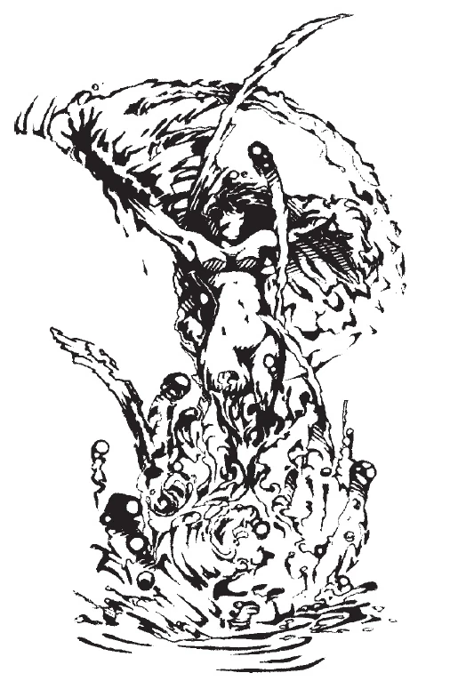 These are creations of Human magiks. Occasionally found in the service of their Conjurers, these simulacrums have the powers of water to use as they will. When found uncontrolled, they prove to be difficult to disperse, as they gain some semblance of independent thought and motivation. In either case, these elementals will attack until they are destroyed or their foe is dead.[4] (W1ManO 60)