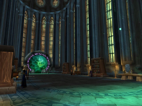 The Wizard's Sanctum houses the Academy of Arcane Sciences[1] (also known as the Academy of Arcane Arts and Sciences[2]). This vine-covered tower sits in the western part of Stormwind City. For a long time, the Academy was considered to be the second-best school of magic compared to Dalaran, but since that region's destruction by the demons and undead, the northern mages fled to Stormwind and took up residence in the tower. It is full to bursting with mages, and some say it is difficult to get a word in edgewise with the differing opinions inside. Yet, as it is the only magic school left in the east, few complain openly.[1]