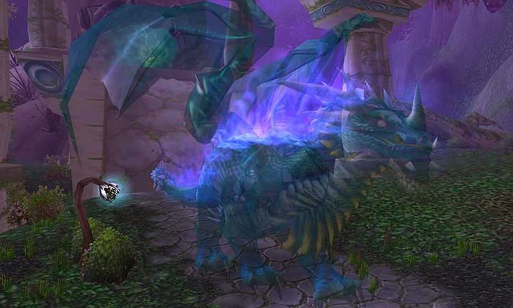 A mighty blue dragon who resides in the wilderness of Azshara, perusing over the countless magical artifacts there. He randomly teleports himself and all players within 30 feet a short distance, wiping aggro, casts a blizzard-like spell that eats mana, and occasionally puts up a magic reflection shield. Also, in order to prevent graveyard-zerging, he places a debuff on players that he kills. Any living players with this debuff will freeze whenever they go near him.