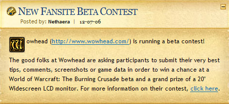 A Wowhead contest featured on the WoW.com front page.