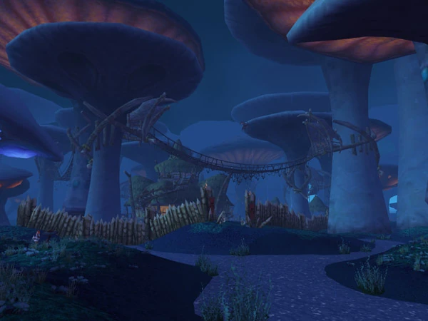 Zabra'jin is a large Horde-aligned troll town in Zangarmarsh with huts connecting to a few mushrooms and wood planks holding the other buildings above the marsh. There is a flight path located here as well as a forge.